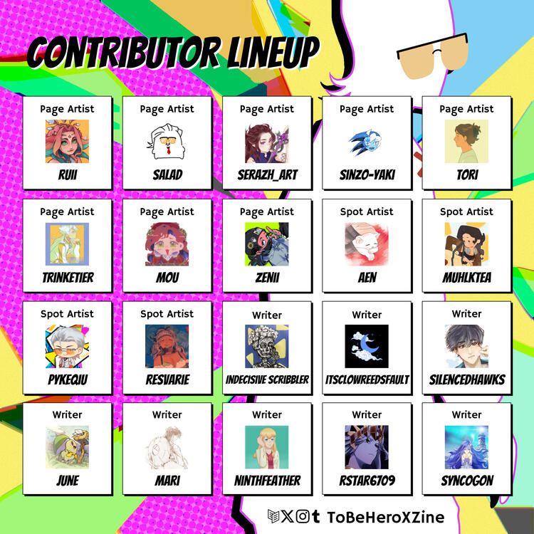 Page Artists will be assigned a hero that must be included in their art from the choice they select in their application. However, this does not mean that you are limited to drawing just one hero, as we encourage pieces with multiple heroes! This assignment is to ensure that all heroes have some representation in the zine.